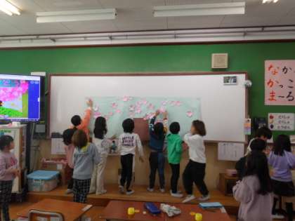 1年間、いろいろとお世話になった6年生に、ありがとうの気持ちをいっぱい込めて、言葉を言ったり歌を歌ったりしました。