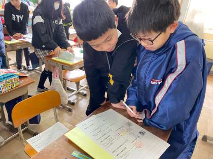 「よもぎの葉をみつけたとき」「町の人にとりかこまれたとき」の女の子の気持ちについて考えました。