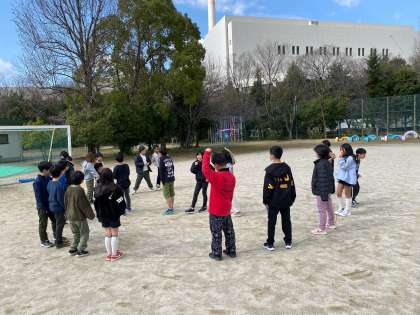 2時間目は運動場へ!「おおかみさん、今何時?」というこれまでにやったことのない遊びをしました。