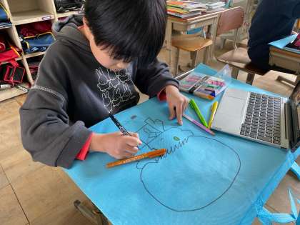 作品バックに絵を描き、1年間の作品を持ち帰りました。