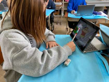 4年 作品バックに…