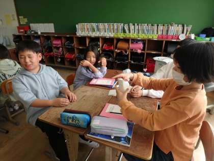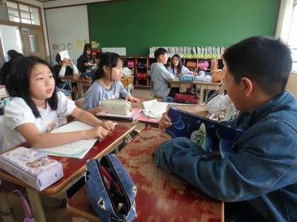 気持ちや様子を表す言葉を紙に書き、その言葉を友達から引き出すためにどのような会話や問いかけをすればよいか考えました。どの子も楽しんで取り組んでいました。