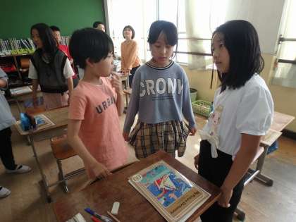 学習の進め方や教科書の使い方を確かめました。「Sounds and Letters」の活動では、どの子も丁寧にアルファベットを書いていました。