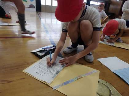 授業の後半には、パワーアップ体操を行いました。昨年度の体力テストの結果から、自分の運動の力や体力を分析しました。この日は、たくさんの運動を紹介し実際にやってみました。