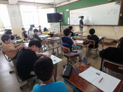 前の時間の学習を生かして「100倍」「1000倍」したときには、どのような数字になるのかを考えました。子どもたちは小数点に注目しながら、しっかりと考えを伝え合うことができていました。