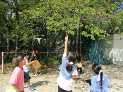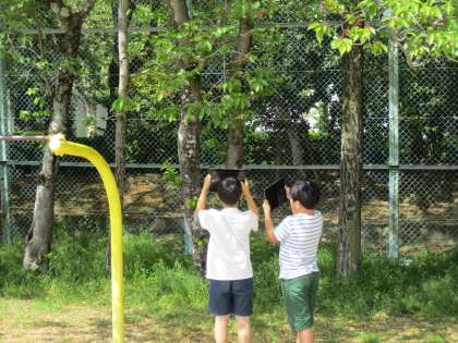 さくらの花はほとんど散ってしまい、葉がたくさん茂ったさくらの木の様子をワークシートにしっかりと書き込んでいました。
