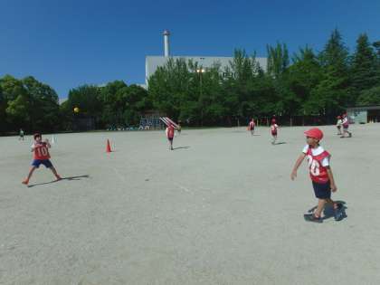 ベースボールの学習が始まりました。3年生の時より、実際のベースボールのルールに近づけようとアウトゾーンを設けましたが、実際にやってみるとあまりうまくいきませんでした。「もっとこうした方が…」「こんなんどう?」とみんなが楽しめるようにたくさんの工夫を出してくれる子どもたちがすてきでした。もちろん!準備や後片付けもテキパキと…素晴らしい!!!