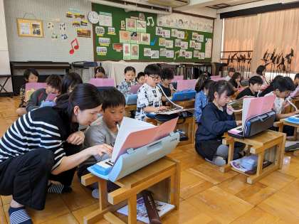 音楽の授業で鍵盤ハーモニカの練習をしました。