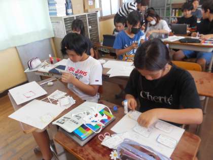 1年生にプレゼントするメッセージカード作りをしました。「〇〇のキャラクター好きかな?」などと1年生に喜んでもらえるように一生懸命に絵を描いていました。