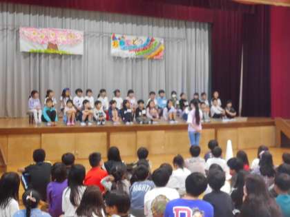 1年生を迎える会は、児童会が企画し、進行してくれました。堂々と前に立って言葉を言う姿が頼もしかったです。