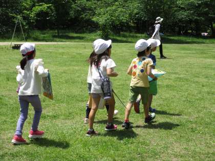 1年生と2年生合同の遠足で、京都府立植物園に行きました。いいお天気の中,グループで植物園の中を探検しました。チェックポイントでは先生からシールをもらいました。