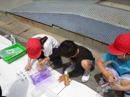 いろいろな色の光を楽しむ学習をおこないました。ペンでぬった色が太陽の光に照らされると… 感動がいくつも生まれる時間となりました。