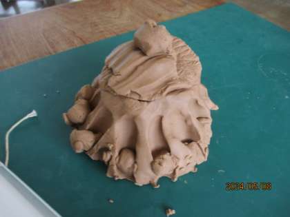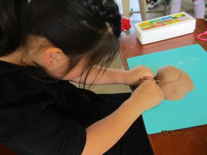 切ってかき出しくっつけての学習で、切り糸やかきべらを使って粘土の形を変えながら、思いついたものを表しました。