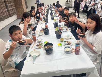 待ちに待った夜ご飯!おかわりもたくさんしていました。