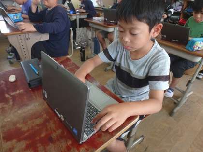 今回の学習はタブレットを活用しながら進めています。タブレット上で資料を選択しながら気付いたことをしっかりとノートにまとめることができています。