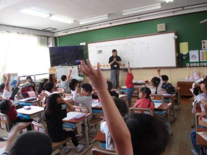 算数の授業では、いくつといくつで「10」になるのか、という学習を数図ブロックを通して学んでいました。みんな意欲的に学びに向かう姿がとてもすてきです。