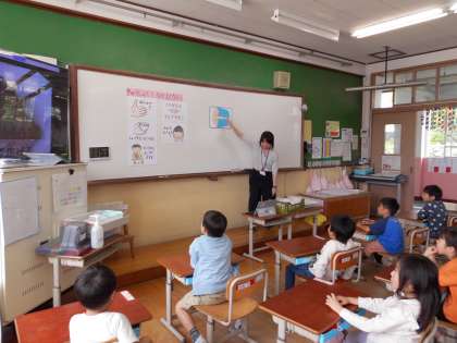 魚の食べ方について学習しました。魚に見立てた画用紙でお箸の使い方を練習しました。その後の給食に出たさばも上手に骨をとって食べる子がたくさんいました。
