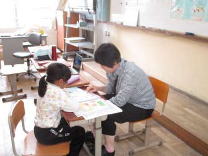 月曜日と金曜日に日本語指導の先生に来ていただき、日本語学習の対象児童に、日本語の使い方、文字の読み書きを教しえていただいています。3名の児童はとても前向きで、日本語が上手になりたいとがんばっています。