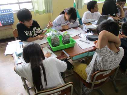条件を変えて育てたそれぞれのインゲンマメの成長の様子から、より大きく成長させるには何が必要なのかをしっかりと考えて交流する姿がたくさん見られました。