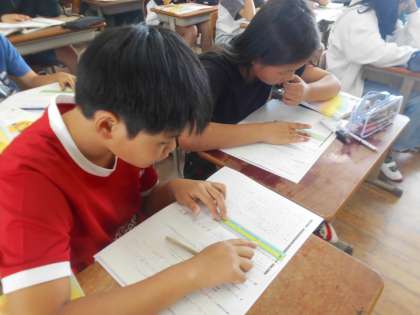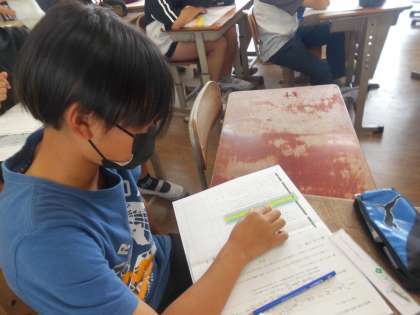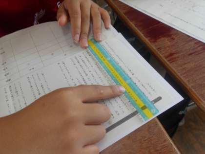 国語の学習で、「もじさし」を使いました。今読んでいるところがどこなのか、その文を集中して読むことができるアイテムです!効果的に使っていってほしいと思います。