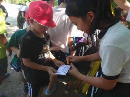 会の終わりには、持って来てもらった招待状にスタンプを。1年生に喜んでもらおうという工夫がすてきでした。