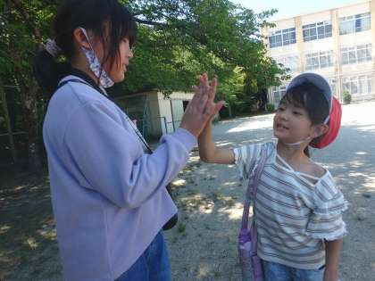 1年生が教室に戻る時にハイタッチをしたり、握手をしたりしている姿がほほえましかったです。