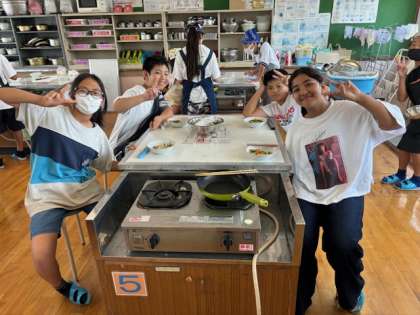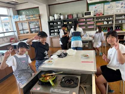 ふりかえりでは、「もう少し火を通してもよかった。」「丁度いいかたさだった。」「味付けが難しかった。」など、実際に作って食べてみて色々なことを感じたようです。