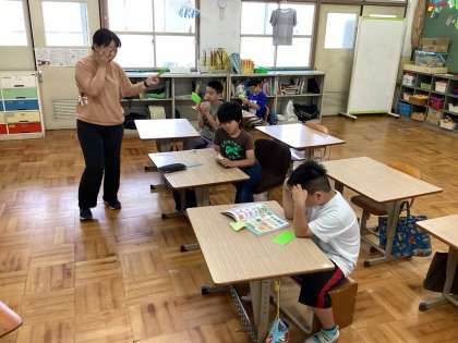 折り紙の本を見て選び、一緒に折り進めています。お気に入りの作品ができました。