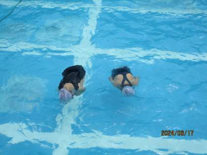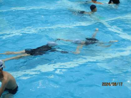 水泳学習が始まりました。1回目の水泳では、2年生のときに学習した、浮く・もぐる運動をたくさんしました。浮くにはどうしたらいいのか、もぐるのはどうしたらいいのかを考えながら学習しました。