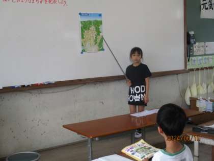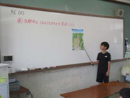 京都市の様子の学習では、京都市はどのようなまちなのか、学習してきたことをまとめて、一人ずつ発表しました。