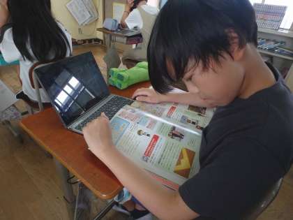 自分の伝えたいことに合わせて、調べたことをまとめました。図を入れながら、レイアウトを工夫し、よりよい資料にしようと取り組んでいました。