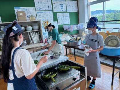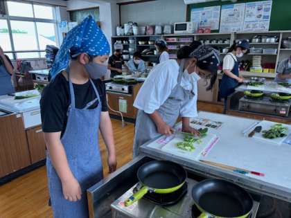 今回の調理実習では、青菜の油炒めとスクランブルエッグを作りました。火加減や炒める時間などに気をつけました。