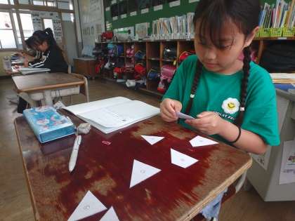 合同な図形の学習が始まりました。実際に図形を動かしながら、楽しんで取り組んでいました。