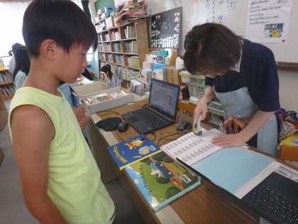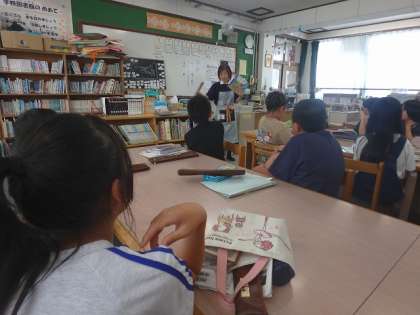 「自分の好きな本!」「目的によって!」「絵が好きかどうか!」と、たくさんの選び方を教えてくれた子どもたち。図書館司書の先生に本の紹介をしていただきながら、「作家で本を選ぶ」といった選び方を教えていただきました。