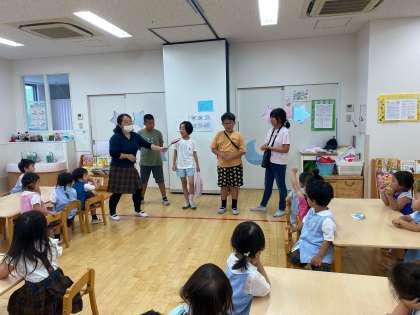 はなぶさ保育園へ「よろこんでもらう会」に行きました。とても楽しみにしていた子どもたち。あいにくの雨でしたが、心は快晴!!!