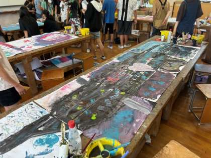 最後には、一人一人で描いた絵を繋げて、一つの絵にしていきました。色々な塗り方を試すことができました。