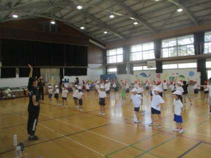 運動会で披露する表現運動。1,2年生のみんなが体育館で、楽しく体を動かしています。運動会を楽しみにしながら、今後パフォーマンスに磨きがかかっていくことでしょう。