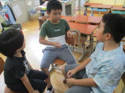 わなげ大会を開くための話し合いをしました。得点はどうする?約束はどうする?など、自分たちでルール作りをしています。今回はチームで高得点をねらうので、それぞれのチームでどうやったら高得点が取れるのか、真剣に作戦を立てていました。次は自分たちで大会を進めていくための役割について考えていきます。