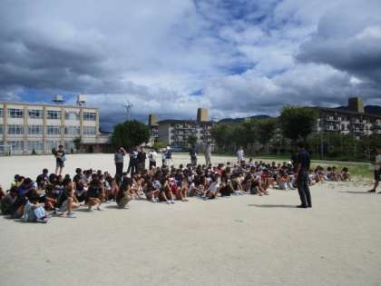 「命を守る」ことを最優先にして行動することを確認し、みんなが助かるようにみんなで助け合っていきましょう、と校長先生からのお話がありました。