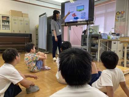 身体計測の前に、養護の先生から「メディアコントロール」についての話をしてもらいました。テレビやゲーム、動画視聴の時間を意識して規則正しい生活ができるようにすることで、睡眠時間を確保したり、家族間でコミュニケーションをとる時間を増やすことができます。