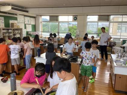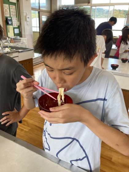 そして、実際に豆乳で「ゆば」を作らせていただき食べました。こうして食べることは初めてで、どの子も楽しくおいしく食べていました。