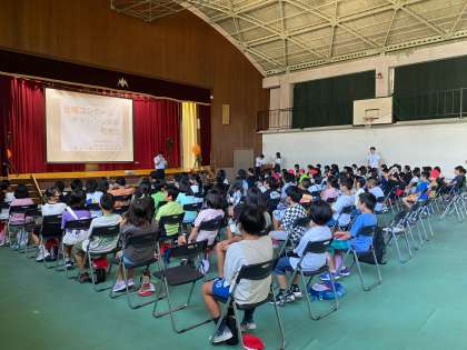 中学生の一生懸命な姿に真剣な眼差しで応える4・5年生でした。見ている大人も心動かされるすてきな時間でした。