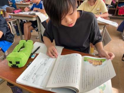 主人公の綾が出会った人やものは、綾にどのようなことを伝える役割をしていたのかを考えました。文章に書かれていることをもとに、登場人物の気持ちの変化を考えることができました。