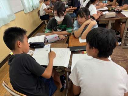 国語の学習では、1年生と楽しく遊びより仲良くなる企画を考えよう!ということで、各グループで話し合いをしています。まずは、話し合いの計画を立てました。