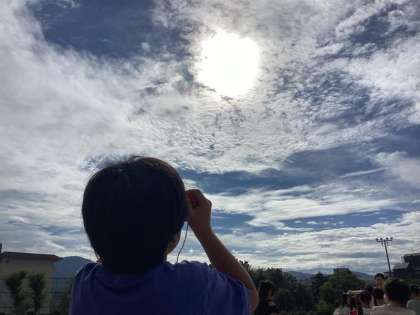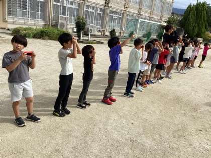 「太陽とかげ」の学習です。遮光板を使い、太陽の位置を確認しました。同時に、影の位置も確認しました。