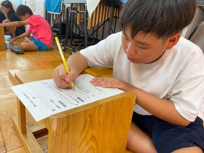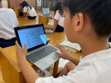 「うわ〜!ええのできた〜!」と嬉しそうに話していた子どもたち。ワークシートには、旋律の動き方や終わりの音などに注目して、自分がこだわったところや面白いとおもったところを書くことができていました。