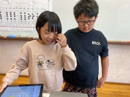自分の旋律と比べてみたり、友達の工夫を聞きながら、よさを見つけたりすることができました。また、つくった旋律の終わる感じに目をつけ、旋律と旋律をつなげて聴いている子もいました。