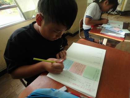 掃除について自分の考えを書きました。普段の学校生活を思い返しながら、「課題」「解決方法」について考えました。