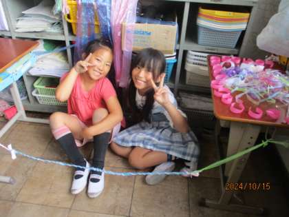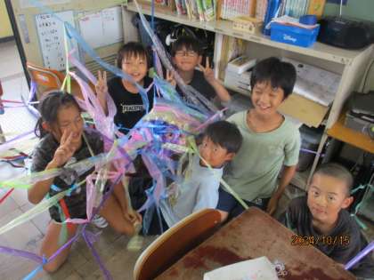 クモの巣みたい、うろこみたい、アスレチックみたい、といろいろと工夫して取り組むことができました。片付ける前に記念に写真を撮りました。