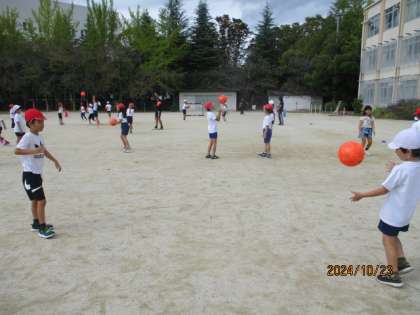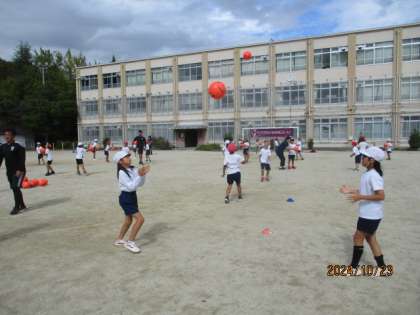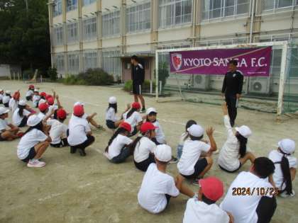 スポーツ夢バンクの事業として、京都サンガのコーチの方に来て頂き、楽しく体を動かしました。